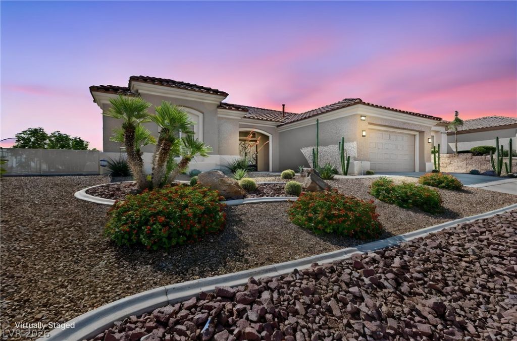 Beautifully updated home with MAJOR upgrades throughout! Enjoy a renovated kitchen with gorgeous granite countertops, soft close cabinets with pull-outs, and stainless appliances! Both bathrooms have been updated with walk-in showers and updated vanities! Fresh interior and exterior paint, new plumbing valves, new vents, and professionally cleaned ducts for added comfort and efficiency. Step outside to a newly enhanced backyard with gorgeous landscaping, an extended covered patio, private spa, and stunning STRIP and MOUNTAIN views!! New water heater, new water softener and RO system, this beautiful home has nothing left to do except move in and enjoy!! Sun City Summerlin offers pools, golf, 3 restaurants, fitness center, pickleball courts, craft rooms, meeting rooms, a ballroom, and a social calendar that has someting for everyone! Don't miss this one!!